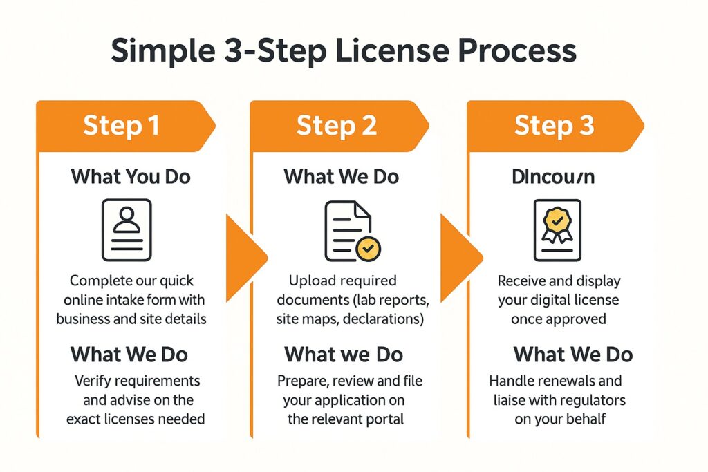 - Eligibility Assessment: We confirm which central and state licences apply to your business.