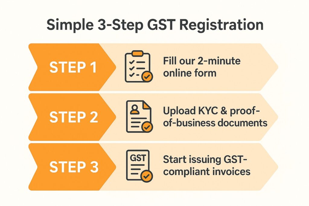 Form GST REG-01 Filing: Our team prepares and submits your application on the GST portal.